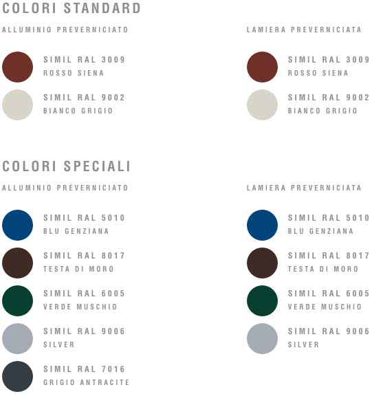 ,acciaio preverniciato, aluzinc, rame.
